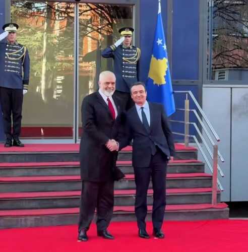 Il Primo Ministro albanese è in visita di Stato nella Capitale kosovara dove ha incontrato la Presidente della Repubblica Vjosa Osmani e il collega e omologo Premier Albin Kurti, intervenendo altresì come relatore alla presentazione di un importante libro accademico e diplomatico dedicato all’esercito di liberazione Uck che ebbe un ruolo determinante nell’affrancamento del Paese dalla dittatura ex Jugoslava e nella proclamazione di uno Stato albanofono sovrano