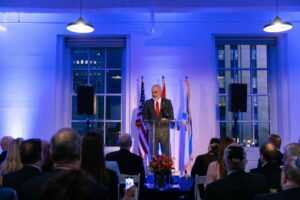 “Provo un sentimento speciale nel ricevere l’onore di essere relatore in questa sede, e voglio girare questo onore al Popolo albanese e alla sua e nostra più grande religione che è quella della ospitalità. Una Nazione è forte quando si prende cura dei deboli, diventa ricca quando si prende cura dei poveri e diventa invulnerabile quando si prende cura dei vulnerabili; la forza di una Nazione si ha quando ha a cuore le proprie amicizie come quella con Voi e con la comunità ebraica. Proprio la settimana scorsa, l’onorevole Isaac Herzog è stato il primo Presidente Israeliano nella Storia a visitare l’Albania e a constatare il gusto della nostra ospitalità che si rafforza in ragione della battaglia che la Nazione e lo Stato ebraico stanno affrontando oggi, non solo per la propria autodifesa ma per una più generale sfida che riguarda tutti noi per evitare di ricadere negli orrori dello scorso secolo”.