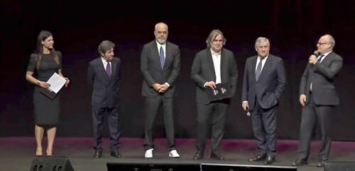 Il Capo del Governo del Paese porta dei Balcani è intervenuto sul palco insieme al Vicepremier italiano Antonio Tajani, al Sindaco di Roma Roberto Gualtieri e all’Editore di RCS sport Urbano Cairo