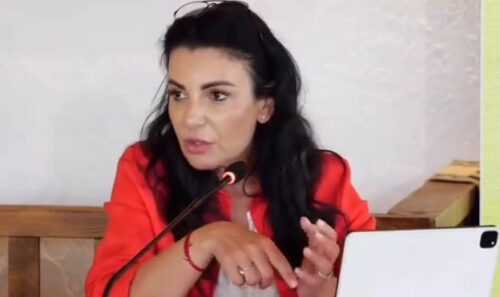 Al microfono, Ardita Kuci, direttrice agenzia statale pagamenti in agricoltura