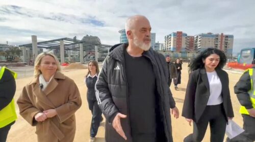 Sopralluogo del Primo Ministro albanese, assieme alla Sindaca facente funzioni Anuela Ristani, nel cantiere, in stato di netta progressione, da cui sorgerà il prossimo terminal della Capitale al servizio della mobilità degli autobus verso il Nord e verso il Sud del Paese, con servizi addizionali dedicati ai passeggeri, ai loro familiari e anche ai residenti