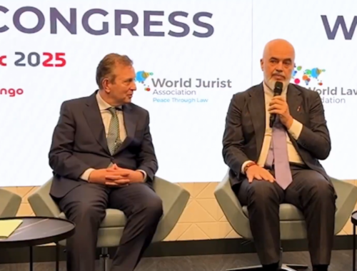 “Nel 2027 saremo la sede designata di una serie di eventi che sarebbero stati inimmaginabili non dico mezzo secolo fa, ma anche solo fino a poco tempo fa. Perché fra due anni, in Albania, saranno celebrati sia il Congresso mondiale della Giustizia, sia il vertice della NATO e le finali Europee di calcio Under 21”: lo ha ribadito l’onorevole Rama, nel corso della conferenza stampa concomitante con la firma dell’accordo per l’organizzazione del “World Law Congress Albania 2027”, che a Tirana porterà circa tremila fra avvocati e massimi luminari, interpreti e analisti giuridici provenienti dalle Corti supreme e dai sistemi giudiziari della gran parte dei Paesi del Mondo avanzato.