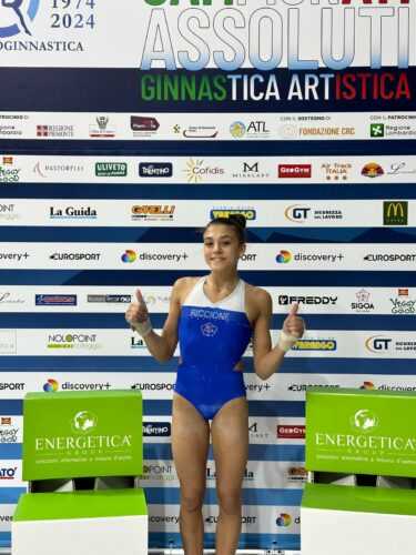 Quindi lo strabiliante decimo posto agli Assoluti di Ginnastica artistica femminile di Cuneo, con un punteggio all around di 100.400, migliore ginnasta Junior d’Italia. E ora la chiamata in azzurro, un attestato di stima da parte della direzione tecnica nazionale alla società riccionese e allo staff tecnico guidato da Anton Stolyar.