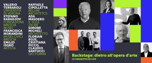 “Backstage: Dietro l’opera d’arte” offrirà un’esperienza coinvolgente, grazie alla partecipazione di ospiti illustri e ai loro molteplici punti di vista sul tema. Storici ed esperti d’arte, professionisti dell’architettura e del design, responsabili di poli museali, e la partecipazione di un grande artista dei nostri giorni, ci guideranno alla scoperta dei “dietro l’opera”: il terreno culturale, le scelte e le idee, la progettualità e la dimensione emozionale che esistono dietro il loro lavoro. Un breve ma affascinante viaggio, un’esplorazione del mondo dell’arte e delle espressioni artistiche contemporanee.