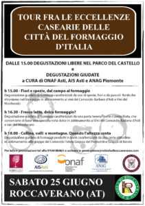 Roccaverano  Nella patria della Robiola, Roccaverano, domenica 26 giugno torna la “Fiera Carrettesca” storico raduno dei produttori di Roccaverano DOP aggregati nel Consorzio di Tutela del formaggio Robiola di Roccaverano. Alla sua ventunesima edizione, per celebrare il ruolo di città del formaggio di cui il borgo piemontese è stato insignito quest’anno dall’ONAF (Organizzazione Nazionale Assaggiatori di Formaggio), l’appuntamento raddoppia dedicando il sabato 25 al Tour fra le eccellenze casearie delle Città del Formaggio d’Italia“.