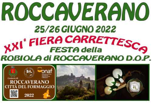 Roccaverano  Nella patria della Robiola, Roccaverano, domenica 26 giugno torna la “Fiera Carrettesca” storico raduno dei produttori di Roccaverano DOP aggregati nel Consorzio di Tutela del formaggio Robiola di Roccaverano. Alla sua ventunesima edizione, per celebrare il ruolo di città del formaggio di cui il borgo piemontese è stato insignito quest’anno dall’ONAF (Organizzazione Nazionale Assaggiatori di Formaggio), l’appuntamento raddoppia dedicando il sabato 25 al Tour fra le eccellenze casearie delle Città del Formaggio d’Italia“.