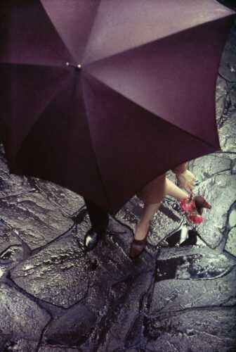 Già nel 1948 iniziò a sperimentare con il colore, in un’epoca in cui questo era considerato commerciale o frivolo. Leiter invece ne fece un linguaggio poetico, anticipando di decenni l’accettazione del colore nell’arte fotografica. Le sue tonalità audaci e vellutate trasformano le scene di strada in composizioni astratte e sensuali, attirando presto l’attenzione del mondo della moda.