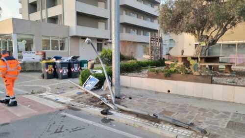 L’incidente e i pali abbattuti