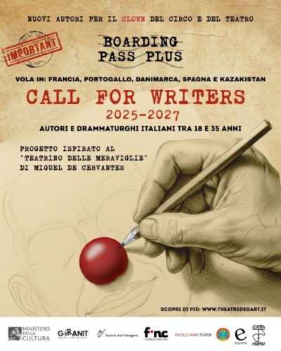 L’Impresa Culturale Theatre Degart di Giardini Naxos apre la selezione per cinque giovani autori italiani under 35 nell’ambito del progetto “Nuovi Autori per il Clown del Circo e del Teatro”, percorso di formazione, ricerca e creazione a dimensione europea e internazionale, sostenuto dal Ministero della Cultura attraverso il bando Boarding Pass Plus.