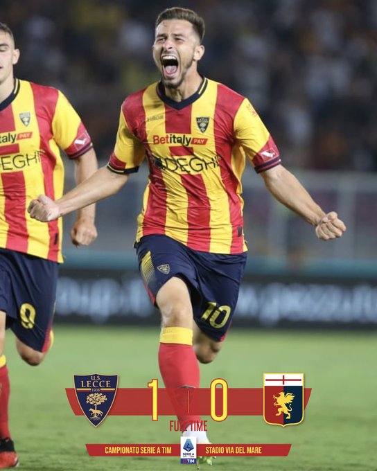 Nell’anticipo giocato al Via del Mare, i salentini sconfiggono 1-0 il Genoa e volano a 11 punti, portandosi momentaneamente al secondo posto e firmando (da imbattuti) il loro miglior avvio di sempre in Serie A. La rete decisiva porta la firma di Oudin (83′), mentre il Genoa si rammarica per il rosso ad Aaron Martin dopo 37 minuti.