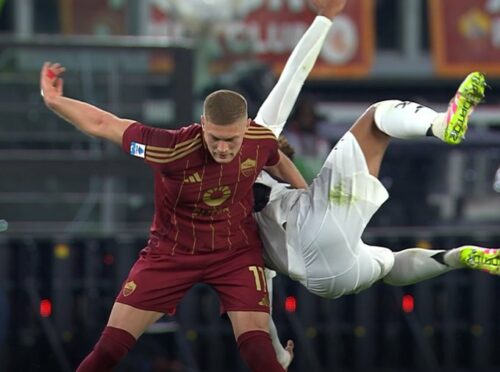 . Juventus aggressiva e che tiene il pallino del gioco nei primi minuti di gara, studiando l’assetto tattico della Roma per cercare spazi per far male ai giallorossi. Uomini di Ranieri che reagiscono alzando il baricentro e andando vicini al gol del vantaggio con Cristante al 25′, col centrocampista bravo a inserirsi su sponda di Dovbyk, ma murato da Kalulu e con la difesa bianconera che replica su Angelino in ribattuta. Occasione che accende la Juventus che al 27’ sfiora la rete dello 0-1 con Nico Gonzalez, ma il colpo di testa dell’argentino su assist di Kalulu si stampa sulla traversa dopo l’intervento di Svilar. Squadre che si allungano dando vita a una sfida emozionante e divertente, con Svilar che chiude la porta ai bianconeri.
