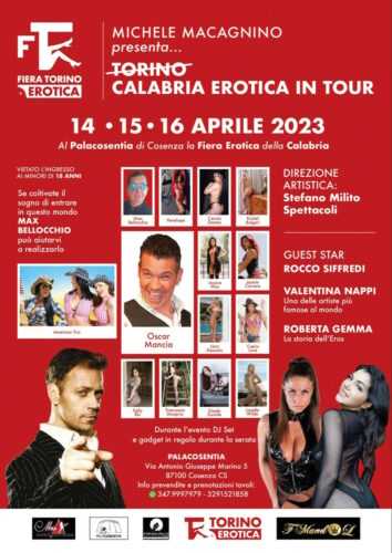 Cosenza – Mancano solo due settimane al taglio del nastro di “TorinoErotica” a Cosenza: tra una quindincina di giorni prende il via il lungo weekend di manifestazione erotica riservata al pubblico adulto. La manifestazione è in programma dal 14 al 16 aprile negli ampi spazi del Palacosentia. Dopo Pasqua la città di Cosenza si trasforma dunque nel centro dell’erotismo della penisola italiana: per un’intero fine settimana, da Nord a Sud, con l’edizione “calabrese” di “TorinoErotica“, storica fiera di settore che di solito è organizzata nel capoluogo piemontese ma, nell’innovativa edizione 2023 accende la città di Cosenza.
