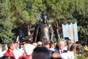Apprezzando la figura dell’Eroe nazionale, l’onorevole Spiropali ha sottolineato che “Gjergj Kastrioti Skanderbeg è l’emblema solenne della Nazione Albanese, la grazia, l’inno, l’eroismo e la bandiera stessa della nostra coscienza e consapevolezza nazionale. È il Padre costituente che ha partorito la Patria e allo stesso tempo il Figlio che l’ha protetta. È la prova, l’esempio e la visione, il sogno vissuto e la battaglia vinta nella nostra principale sfida per l’identità e per la scelta del modello di civiltà: l’Occidente che sorge e l’Oriente che tramonta”.