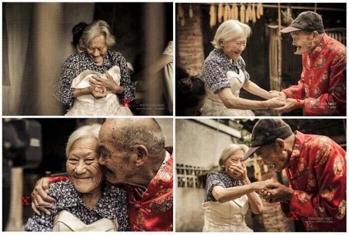 Così il nipote ha realizzato questi simpatici scatti. Le istantanee che vedi sono state fatte nel momento in cui la nonna ha di nuovo indossato il vestito da sposa per provare a recuperare quel momento con il marito.