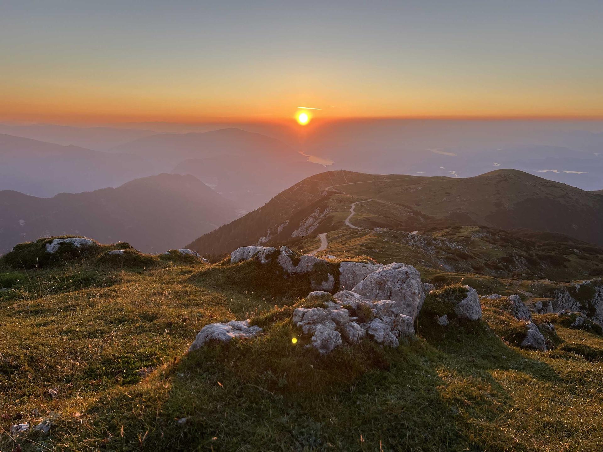 Un po’ più lungo, ma più comodo, è il percorso dalla Walderhütte per vedere l’alba al Wöllaner Nock. Alla Ferlacher Spitze si arriva tramite un sentiero breve, ma a tratti ripido, partendo dalla Bertahütte. Una volta arrivati alla cima, si ammira una splendida vista sul Lago di Faak, sulla città di Villach e sul lago Wörthersee.