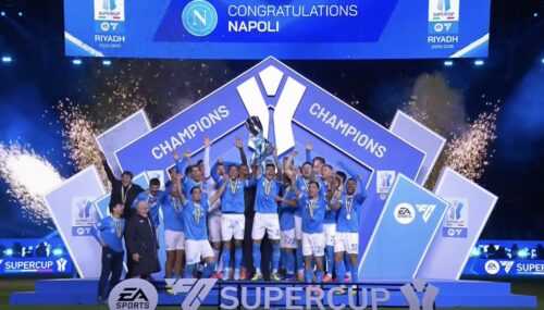 All’Al-Awwal Park di Riyad, il Napoli vince 2-0 contro il Bologna e si aggiudica la Supercoppa Italiana. La gara si sblocca al 39’ con il sinistro da fuori di David Neres che batte Ravaglia. Al 57’ gli azzurri trovano il gol del raddoppio ancora con l’esterno brasiliano che approfitta di un pasticcio difensivo tra il colombiano Lucumi e il portiere rossoblù. La squadra di Conte ha poi sfiorato il tris con Hojlund, Politano e Lang in svariate occasioni. Quarta finale persa da Italiano su cinque disputate in carriera, di cui tre con la Fiorentina e due con la società di Saputo.
