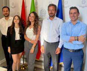 Nei giorni scorsi – come comunicato dalla Sede diplomatica in Tirana – si è svolta “la gradita visita dei 5 studenti italiani del Collegio d’Europa nella capitale albanese, i quali si sono intrattenuti in una lunga e proficua chiacchierata con l’Ambasciatore Fabrizio Bucci. Per gli alunni interessati è stata una grande emozione, poiché sono i primi iscritti al Campus di Tirana, e pertanto sono testimoni di un momento storico che avvicina ulteriormente l’Albania all’Unione Europea. A partire da quest’anno accademico, infatti, la Sede di Tirana del Collegio d’Europa si affianca a quello di Bruges e Natolin (rispettivamente nel Belgio e nella contea di Varsavia in Polonia, ndr)”.
