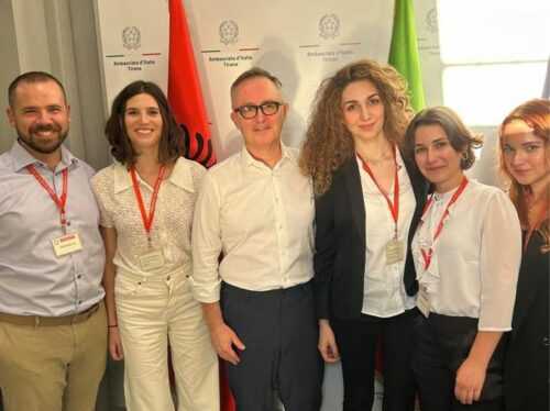 Nei giorni scorsi – come comunicato dalla Sede diplomatica in Tirana – si è svolta “la gradita visita dei 5 studenti italiani del Collegio d’Europa nella capitale albanese, i quali si sono intrattenuti in una lunga e proficua chiacchierata con l’Ambasciatore Fabrizio Bucci. Per gli alunni interessati è stata una grande emozione, poiché sono i primi iscritti al Campus di Tirana, e pertanto sono testimoni di un momento storico che avvicina ulteriormente l’Albania all’Unione Europea. A partire da quest’anno accademico, infatti, la Sede di Tirana del Collegio d’Europa si affianca a quello di Bruges e Natolin (rispettivamente nel Belgio e nella contea di Varsavia in Polonia, ndr)”.