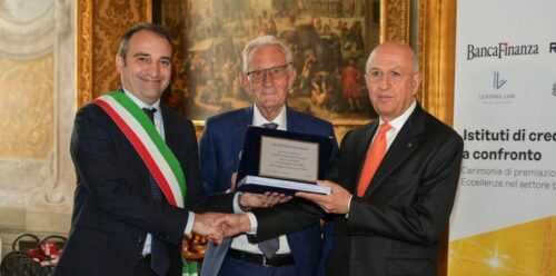 Per tutti questi ordini di motivi, Banca Finanza ha inteso assegnare al Presidente Patuelli una targa di pregio che gli è stata consegnata dal Professor Ghisolfi e dal Sindaco del Comune di Torino Stefano Lo Russo. Il riconoscimento elogia primariamente le alte qualità professionali, morali e umane del Presidente dell’ABI e il contributo da questi attuato a favore dello sviluppo economico nazionale, nonché l’impegno che egli ha svolto per addivenire alla stipula del protocollo d’intesa fra ABI, protezione civile e associazioni dei consumatori per mettere le banche in condizione di assicurare aiuti e sostegni alle popolazioni colpite da calamità naturali.
