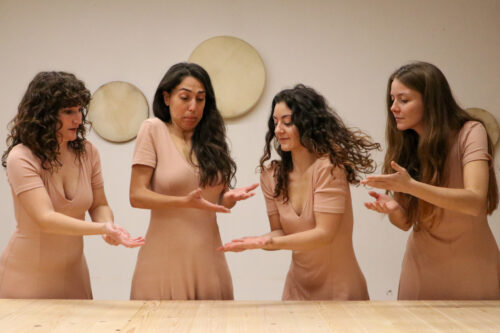 La scena si apre con un’immagine evocativa: è tornato l’inverno, la festa è finita e restano poche luci per strada, gli avanzi in dispensa e gli strascichi di un ricordo felice sulla pelle. In scena quattro donne, interpretate da Viola Centi, Maria Carmen Di Poce, Gabriella Indolfi e Giulia Pesole: chi sono? Cosa le unisce? Insieme, compongono un immaginario collettivo legato alla vita domestica e alla cucina, conducendo gli spettatori in un viaggio attraverso ricordi, suggestioni e rituali quotidiani: dalla preparazione di pietanze all’apparecchiamento della tavola, dalla festa alla preghiera, dalla parola al rito, in attesa di una nuova estate.