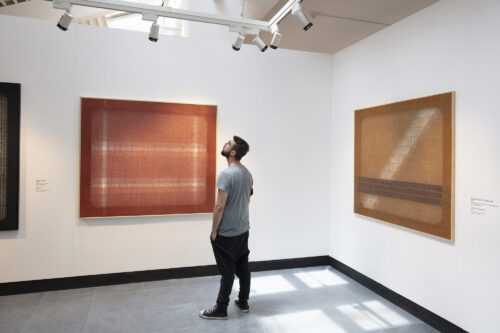 Conosciuto per l’uso di materiali comuni, come la juta con cui ha composto i grandi dipinti segnati da figure geometriche, in mostra sono presentate anche opere meno note, tra cui alcune installazioni ambientali, indagini sul rapporto tra opera e ambiente, azione e contesto.
