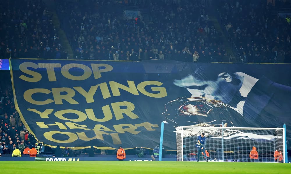 Il messaggio dei tifosi dei Citizens sugli spalti era chiaro: il pallone d’oro ce l’abbiamo noi, voi state ancora rosicando. Peccato che al momento non giochi e la squadra sia in crisi nerissima, vien da precisare. Non sono esattamente dettagli a questi livelli. (Chissà se la società ha autorizzato il mega striscione, o se gli sia passato sotto il naso. Non è dato sapere per certo. Resta comunque una delle cose meno ultras della storia.)