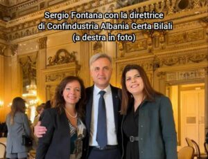 Sergio Fontana è altresì a capo di Confindustria Albania, la più rappresentativa associazione di categoria delle imprese italiane nel Paese delle Aquile, e al suo ruolo, nell’ambito del sistema di diplomazia istituzionale ed economica, si deve gran parte del primato pugliese nel più generale contesto della leadership economica e commerciale dell’Italia nelle relazioni con il Paese d’oltre Adriatico.