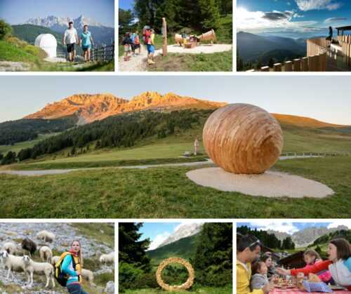 Fra i pascoli in quota, il LATEMAR.ALP è una facile escursione che regala agli occhi autentiche gioie della natura e ai bambini tante informazioni utili e curiosità grazie alle stazioni con audio-giochi interattivi. Sempre in quota Latemarium, il nome stesso di LATEMAR.360° suggerisce quanto anche questa proposta escursionistica abbia a che fare con scorci spettacolari e vette alpine, ingredienti di un’emozionante salita che vanta ben quattro piattaforme (una delle quali è parte del famoso rifugio Oberholz) per farsi travolgere dalla bellezza dal Patrimonio dell’Umanità UNESCO.