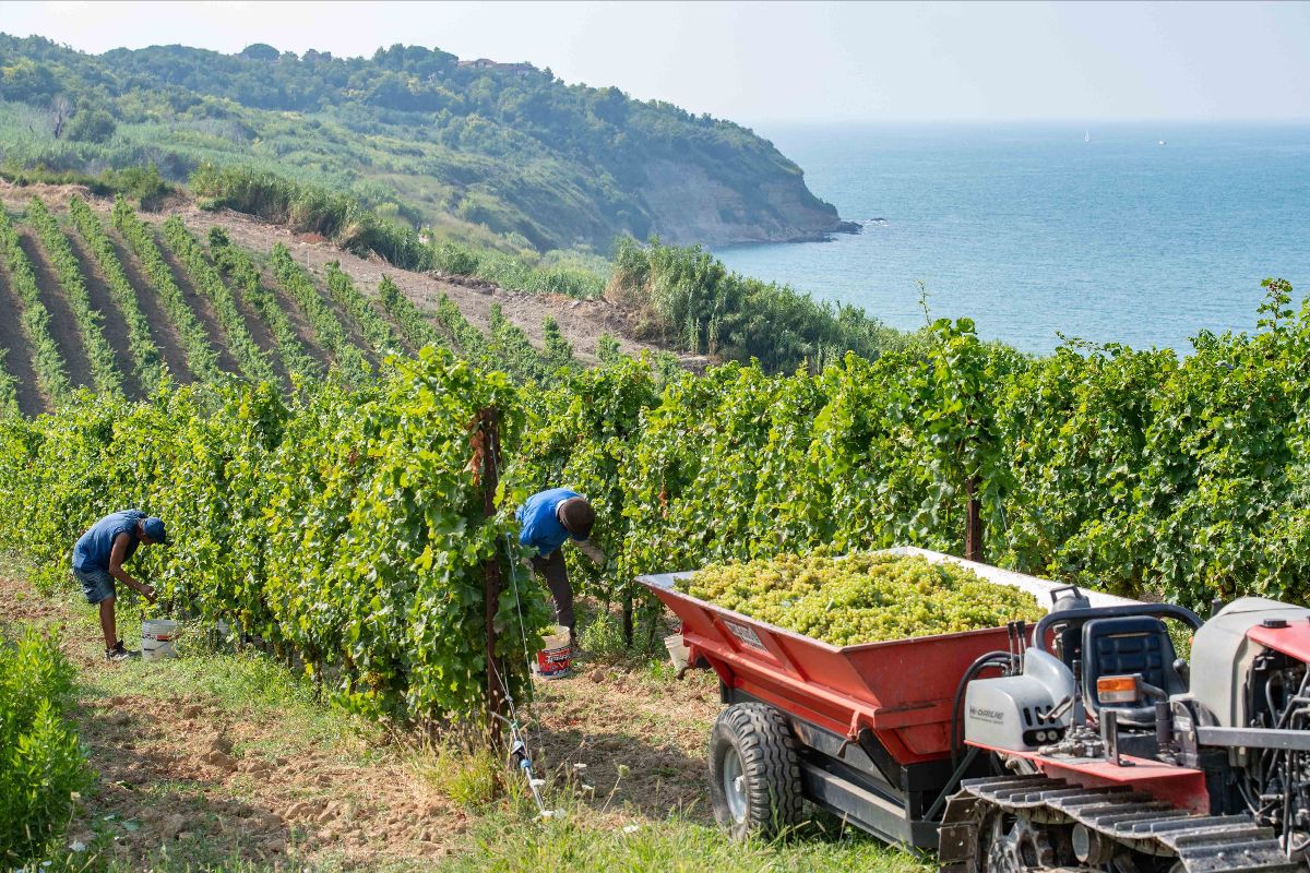 Sono caratteristiche culturali, sociali, quasi antropologiche, che finiscono anche in bottiglia, perché nelle produzioni Fantini il legame con il territorio è il primo valore che va preservato: «Come dico sempre, il vino in bocca deve sapere del suo chicco d’uva», chiosa Sciotti. Ossia deve esprimere il luogo dove il grappolo si è formato ed è stato vendemmiato. «Ogni presentazione di Fantini che noi organizziamo nel mondo è ricca di immagini del nostro territorio, iniziamo sempre parlando del luogo da cui un vino proviene perché la terra di origine è la carta d’identità di ciò che poi andiamo a versare nel calice».