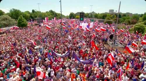 Provenienti da tutta la Polonia, i manifestanti – sfoggiando i colori della bandiera polacca, il bianco e il rosso, quelli dell‘Unione Europea e quella di Solidarnosc – hanno risposto all’appello del leader del principale partito centrista di opposizione, Piattaforma civica, PO, l’ex leader del Consiglio europeo Donald Tusk, a protestare contro “l’alto costo della vita, gli imbrogli e le bugie” e “a favore della democrazia, di elezioni libere e dell’Ue”.