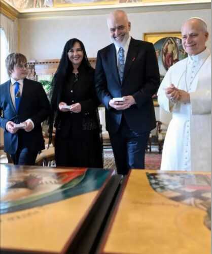 Accompagnato dalla moglie Linda, dal figlio Zaho e dalla Delegazione di accompagnamento, il Primo Ministro Edi Rama ha iniziato ieri la propria missione ufficiale in Vaticano, su invito della Santa Sede. Il programma prevede visite nella Basilica di San Pietro, nella Stanza delle Lacrime, nella Cappella Paolina, nella Sala Reggia, nella Cappella Sistina, presso l’Altare di San Giovanni Paolo II, e nel luogo di sepoltura di Papa Francesco nella Basilica di Santa Maria Maggiore. Il compianto Papa Bergoglio fece visita in Albania nel settembre del 2014, nel primo anno di governo di Edi Rama, e portò a buon fine l’iter per la canonizzazione di Madre Teresa di Calcutta, Santa sociale albanese, e per la beatificazione dei martiri ecclesiali uccisi dalla dittatura ateista comunista.