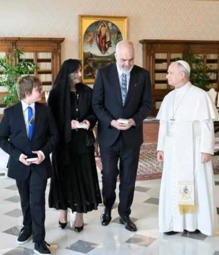 Papa Leone ha ricevuto il Premier Edi Rama, la First lady Linda e il giovane figlio Zaho