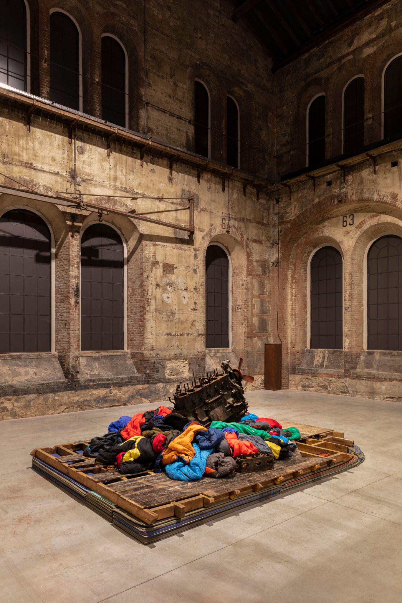 Due filoni discorsivi attraversano idealmente il percorso espositivo. Le opere esposte al Binario 1 si concentrano sulla transizione dalla società industriale a quella post-industriale, e sulla necessità di re-immaginare un futuro che si faccia carico dei lasciti materiali, sociali e ambientali di quel modello. Tra questi, il video di Kevin Jerome Everson, Century, che riprende la demolizione dell’omonimo modello di automobile, l’indagine sociale di LaToya Ruby Frazier, The Last Cruze, che testimonia le conseguenze della chiusura di uno stabilimento automobilistico sulla comunità di Lordstown, Ohio, e la monumentale installazione di Mike Nelson, The Asset Stripper, in cui materiali recuperati da industrie dismesse paiono fantasmi di un’epoca passata.