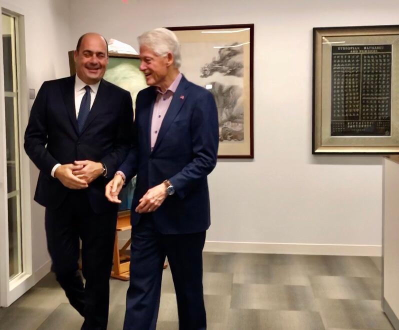 II sogno americano del Partito Democratico è l’abbraccio a Capitol Hill fra Nicola Zingaretti e Nancy Pelosi, la leader dem che a 79 anni suonati non ha ancora mai ceduto agli affondi di Donald Trump e ora è pronta a inchiodarlo al peso delle sue azioni con l’awio dell’inchiesta d’impeachment: «Abbiamo ribadito che in un momento di grande turbolenza l’Alleanza Atlantica va rafforzata». E poi la stretta di mano con l’ex presidente Bill Clinton, il drink serale nella residenza del sindaco di New York Bill De Blasio. E la discussione alla Casa Bianca con alcuni mèmbri del Consiglio di Sicurezza nazionale sui dazi alle auto europee che ora potrebbero colpire pure l’Italia: «Sarebbe l’ennesimo grave errore».